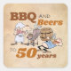 Sticker Carré Cartoon BBQ Et Bières 50e Anniversaire Thème Rusti