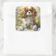 Sticker Carré Cavalier King Charles Spaniel avec Oeufs de Pâques