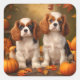 Sticker Carré Cavalier King Charles Spaniel Chiot Citrouille d'a