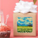 Un beau paysage peint représentant au premier plan un champ de jonquilles et à l’arrière-plan des arbres et des montagnes au loin. Tout cela sous un beau ciel bleu printanier. Créé par fantabuloustef