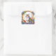 Sticker Carré Chat assis dans la fenêtre avec Fleurs Aquarelle
