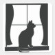 Sticker Carré Chat en Silhouette Assis à la fenêtre