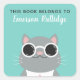 Autocollant à plaque turquoise avec un chat gris cool portant des lunettes de soleil blanches. Ce livre appartient à l'autocollant. Ajoutez le nom de votre enfant en calligraphie blanche.