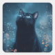Sticker Carré Chat noir au milieu des Fleurs sauvages lune