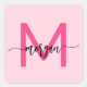 Sticker Carré Chaud rose moderne Script Girl Monogramme Nom