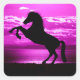 Sticker Carré Cheval noir Ciel pourpre et eau