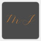 Sticker Carré Chic calligraphie gris orange monogramme nom initi