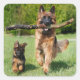 Sticker Carré Chien berger allemand à longue chair et chiot