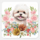 Sticker Carré Chien maltais aux fleurs, Chien maltais mignon