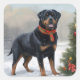 Sticker Carré Chien Rottweiler pendant Noël de neige