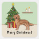 Sticker Carré Chien rouge Golden Retriever avec sapin de Noël