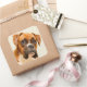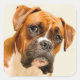 Sticker Carré Chiot en boîte sur fond de crème ivoire.
