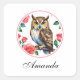 Sticker Carré Chouette aquarelle décorative avec Rose
