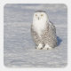 Sticker Carré Chouette neigeuse debout près de l'eau créant une