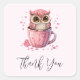 Sticker Carré Chouette rose mignonne dans un Merci de coupe