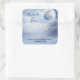 Mariage merci autocollants avec un ciel d'imaginaire magique avec des nuages bleus fluides et une grande belle lune. 2 cygnes blancs qui volent ensemble.