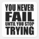 Vous pouvez ajouter un peu d'originalité à votre collection d'armoires avec ce "vous n'échouez jamais jusqu'à ce que vous arrêtez d'essayer" design texte avec une police de typographie géniale lettrage, est une excellente idée cadeau pour les hommes, les femmes, les maris, la petite amie de la femme, et un petit ami qui aimeront cette motivation unique et dicton inspirant. Les meilleures paroles extraordinaires courtes positives présentes pour votre collection de sagesse. Si vous aimez cette illustration, vous pouvez consulter d'autres modèles et options similaires.