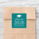 Scellez vos enveloppes et sacs de faveur de graduation avec ces stickers de graduation modernes! Les autocollants sont munis d'un capuchon de graduation blanc en haut de la conception avec "Class of 2025" en gras sur un arrière - plan turquoise. Personnalisez l'autocollant turquoise avec le nom, l'école et l'année de diplôme du diplômé. Ce design est parfait pour les baccalauréat ou collégial.
