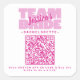 Payez une tournée à la mariée ! Conception d'autocollant de code QR de soirée d'enterrement de vie de jeune fille personnalisée pour votre soirée de bachelorette avec "ÉQUIPE DE LA MARIÉE" en caractères gras rose clair. Personnalisez le nom de la mariée en écriture rose chaud sur un fond blanc net. Le titre de l'événement ou de la soirée d'enterrement de vie de jeune fille est indiqué ci-dessous en rose vif ainsi que le lieu de la fête. Personnalisez avec votre code QR lié à l'APP de votre choix. Personnalisez les instructions pour le code QR ci-dessous. Message en cas de questions ou de demandes de couleurs personnalisées. Le code QR tel que conçu pour un autocollant fini de 3 pouces sera un grand 3 x 3 cm. Les codes QR de moins de 2 x 2 cm ne sont pas recommandés. Contactez-moi