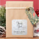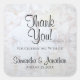 Ces beaux autocollants sont parfaits pour remercier vos invités ou les membres de votre mariage. Utilisez pour les faveurs ou les cadeaux. Présente du texte noir sur un arrière - plan de reflet des fleurs et des coeurs de pivoines blanches. Le texte est entièrement personnalisable et se lit : Merci pour célébrer avec nous! et présente les noms du couple et la date du mariage.