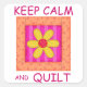 Montrez votre amour de la courtepointe avec ce bloc de courtepointe amusant et coloré qui proclame "Conserver le calme et la courtepointe". Ce design est original de l'art de la courtepointe avec un bloc de patchwork de fleurs appliqué coloré. Le mot "courtepointe" est facile à changer pour un autre mot de votre choix. Le design des courtepointes est dans des couleurs vives et dynamiques d'orange, de jaune et de rose pour une belle palette de couleurs. Entièrement personnalisable pour personnaliser. L'art de la courtepointe est l'art original de Phyllis Dobbs, concepteur de tissus et de courtepointes. Cet art est disponible sur d'autres produits et dans plusieurs arrière - plans de couleur et est également disponible sur plus Garder Calm produits avec différentes surfaces composées. Plus de produits sont disponibles dans Phyllis' BusinessWithFlair store.