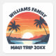Ces autocollants cool de lever de soleil Maui Hawaii portent votre nom de groupe personnalisé pour une réunion de famille ou un voyage sur cette île hawaïenne. Un beau souvenir de vacances avec un soleil orange sur les eaux bleues de l'océan de votre croisière ou destination côtière.