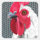 Portrait de coq blanc avec une clôture en fil de poulet dans l'arrière - plan