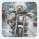 Sticker Carré Coton De Tulear Chien équitation Moto Noël