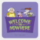 Regardez Muriel, Courage et Eustace derrière le panneau qui dit : "Bienvenue à nulle part".