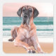 Sticker Carré Coutume Grand Chien Danse assis sur la plage