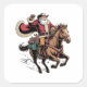 Sticker Carré Cowboy Père Noël Monter Un Cheval Noël