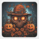 Sticker Carré Crâne, Jack-O-Lanterns et Fleurs