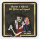 Dia de los Muertos - Stickers de Mariage fun, super mignon et adorable couple de crânes vintages Charro et Catrina dansant à l'air de cette vie et au-delà. Photos d'enveloppes amusantes et colorées avec un arrière - plan texturé noir, décoré d'un cadre doré de fantaisie, avec des jeunes mariés personnalisables et la date et l'emplacement mariage