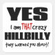 Ce dessin humoristique présente de grandes lettres audacieuses, noires et rouges pour leur faire savoir aux citadins que vous êtes vraiment la folie des collines qu'on leur a prévenues.