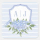 Sticker Carré Crête Monogramme Hydrangée Bleue avec bandes Favor