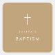 Sticker Carré Croix brun or chic Baptême