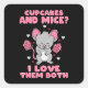 Sticker Carré Cupcakes et souris Je les aime tous les deux