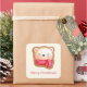Joyeux stickers de Noël avec un joli et adorable visage d'ours mis sur une base de biscuits. Portant un foulard rayé rouge et blanc.