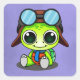 A cute chibi est une illustration. Un bébé vert a turtle wearing a blue scarf and brown aviator a adoré goggles. Big wide kawaii eyes and an adorable smile.