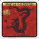 Dans un carré sont un Dragon noir coupé en papier, placé au centre en regardant un ornement doré à l'intérieur duquel est le deuxième dragon avec idéogramme. Derrière la scène, il y a un arrière - plan rouge sur lequel des lettres décoratives et ornées forment les mots : DRAGON YEAR. Design sur autocollant carré sur arrière - plan noir. Vous pouvez facilement changer de numéro (police, couleur, taille et position) en cliquant sur le bouton personnaliser. Carte de voeux correspondant (position verticale et horizontale), carte postale de vacances et plus... Parfait pour le Nouvel An Chinois du Dragon 2024 ou anniversaire (personnes nées dans l'Année du Dragon).