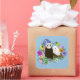 Un sable chocolat et des furets de champagne se côtoient au milieu de fleurs colorées dans un décor bleu