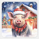 Sticker Carré Cute rustique porc de Noël et grange