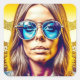 Sticker Carré Dame cool en Lunettes de soleil bleues