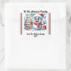 Un autocollant carré joyeux avec un bonhomme de neige souriant, entouré d'arbres enneigés et de cadeaux festifs. Parfaitement conçu pour ajouter une touche personnelle aux forfaits de vacances, il reflète la chaleur et la joie des fêtes de Noël avec la famille et les amis.