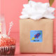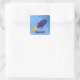 Un autocollant amusant pour les garçons. Un vaisseau-fusée bleu aux accents rouges et verts qui explose dans l'espace. Ciel bleu et petites étoiles.