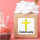 Verrerie du véhicule, grande croix jaune avec CHAPLAIN en lettres noires