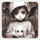 Sticker Carré Déplaisante fille Big Eyed Chibi poupée