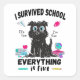 Conception amusante de l'école avec un chien stressé et la citation "J'ai survécu à l'école, tout va bien". Parfait pour une dernière journée d'école avant les vacances d'été ou les vacances d'été. Pour les élèves et les enseignants.
