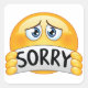 Un émoticône triste avec un visage triste et un signe désolé. Ce design semble vraiment efficace sur ce Stickers
