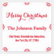 Elégante, personnalisée, personnalisée, blanche, belle luxueuse typographie de script rouge de Noël, flocons de neige, joyeux Noël retour adresse étiquette autocollants carré. Pour customiser, il suffit de taper votre nom / nom du couple / nom de famille / nom de famille, et adresse. Un bel autocollant parfait pour vos mailings de noël cette saison des fêtes.